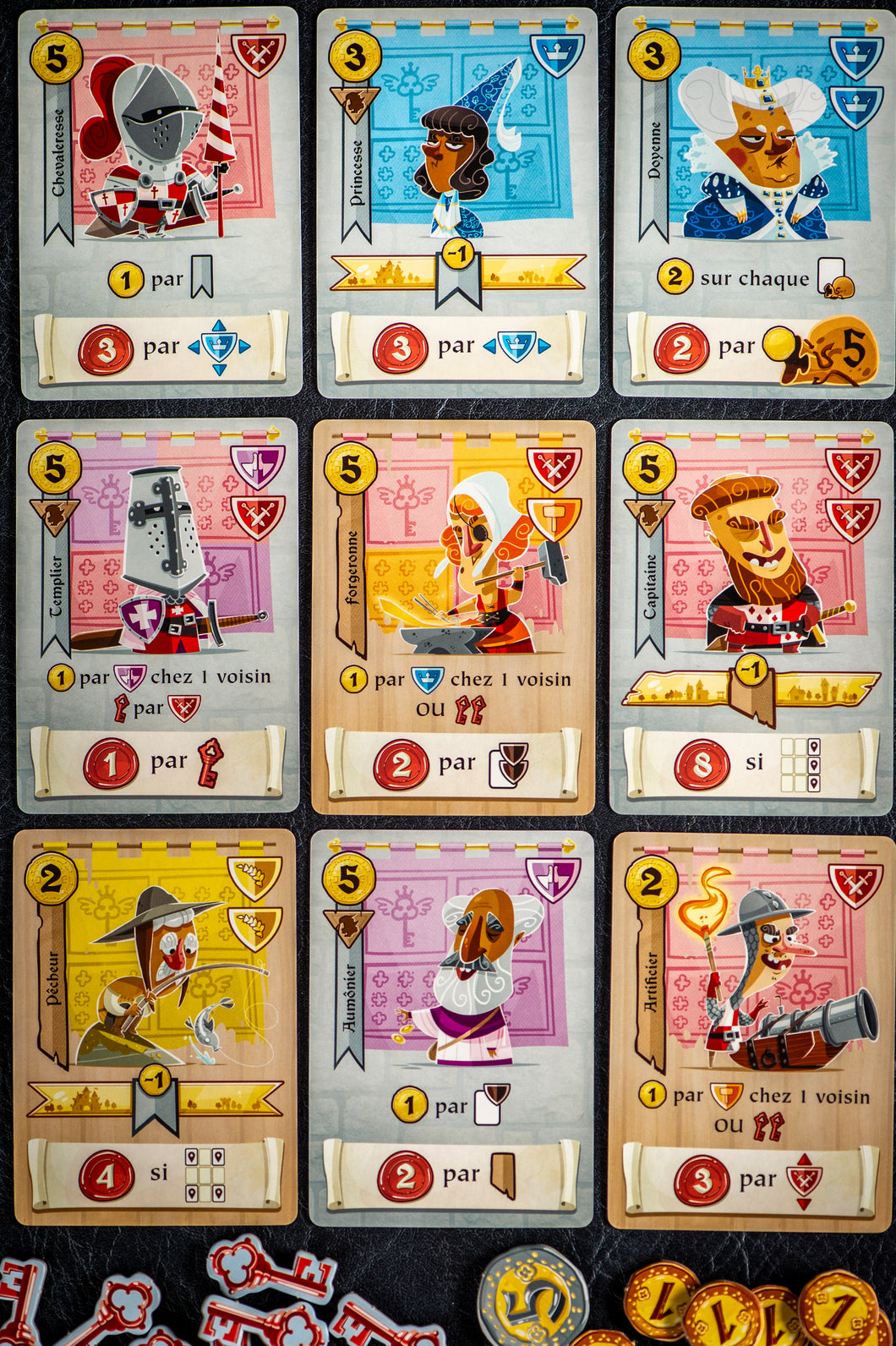 Ce jeu de construction de tableau dont la simplicité n’a d’égal que la richesse, procurant des sensations très gratifiantes ! Chaque tour, vous recrutez juste un personnage pour l’ajouter dans votre tableau, mais cette action très simple concentre énormément de décisions importantes :
