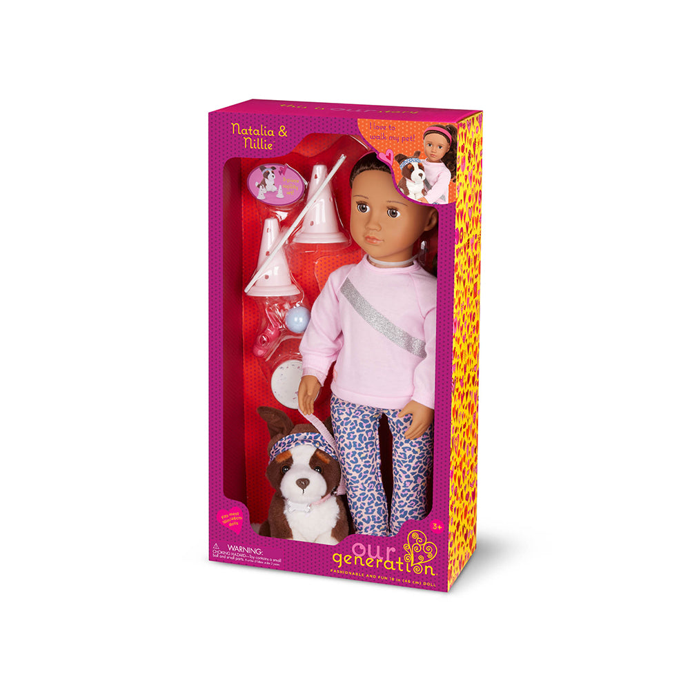 C'est le jour de l'entraînement avec la poupée Natalia et son chiot espiègle Nillie!