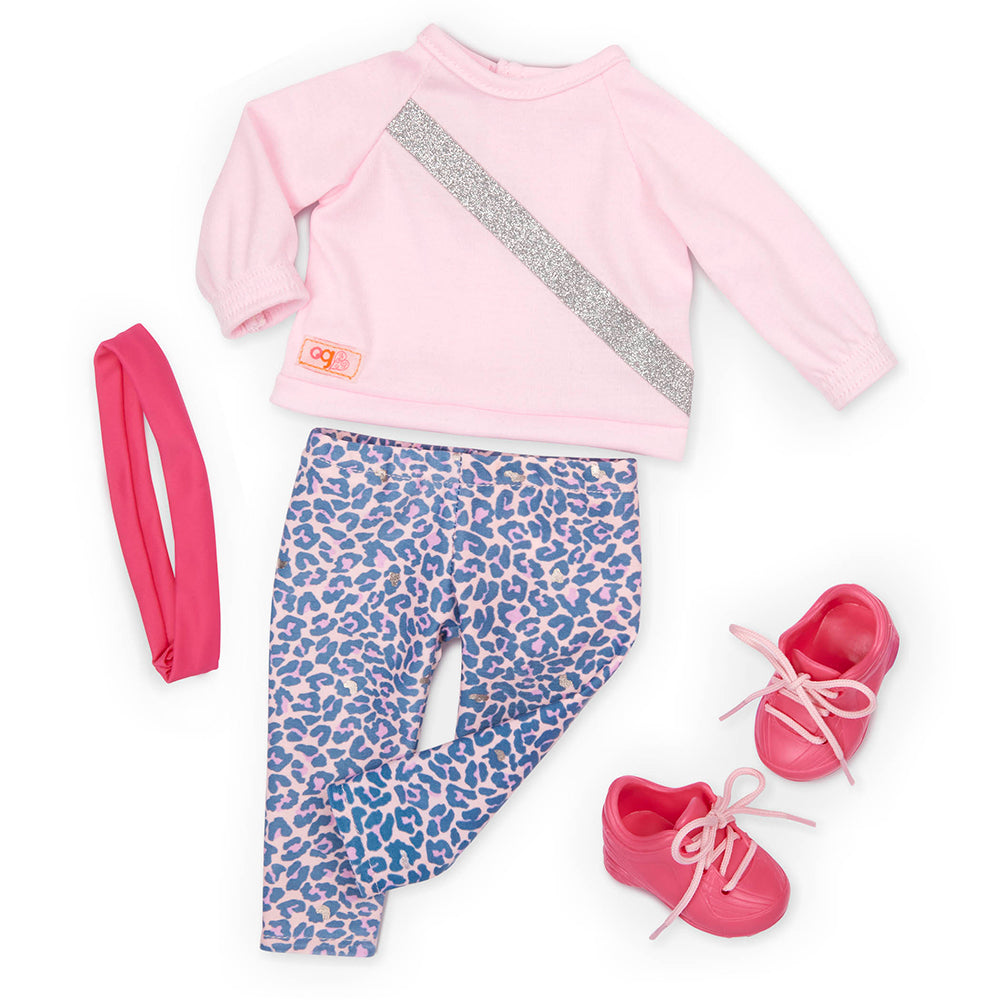Le chiot de Natalia est un Border Collie de 15 cm avec une douce fourrure en peluche marron et blanche, des sourcils pelucheux et un collier élégant. Natalia a de beaux yeux bruns qui s'ouvrent et se ferment avec de longs cheveux bruns à coiffer. Elle arrive vêtue d'un haut avec une broderie à rayures scintillantes, des leggings à imprimé léopard, des chaussures avec de vrais lacets à nouer et un bandeau. Sa tenue est également dotée de fermetures faciles à ouvrir pour l'enfiler et l'enlever rapidement. Vous pouvez ainsi mélanger, assortir et créer des looks plus amusants pour n'importe quelle activité!